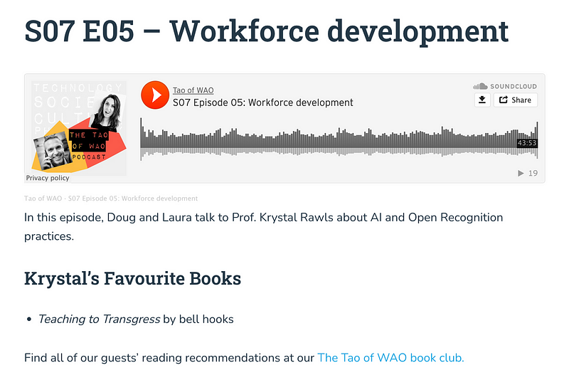 In the fifth episode of Season 7 of our podcast, we talk with Prof. Krystal Rawls about AI and Open Recognition practices.