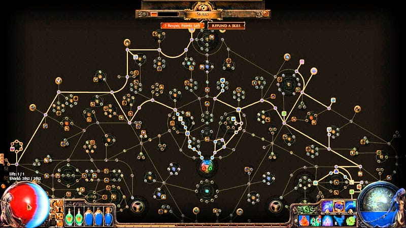 In the world of gaming, there is an established notion of a ‘skill tree’. The above example is from a game called Path of Exile, and it looks very constellation-like. As you gain ‘skill points’ you can choose to level up your character in different ways. As you can see from the above screenshot, there are potentially hundreds, if not thousands, of different ways of doing this.