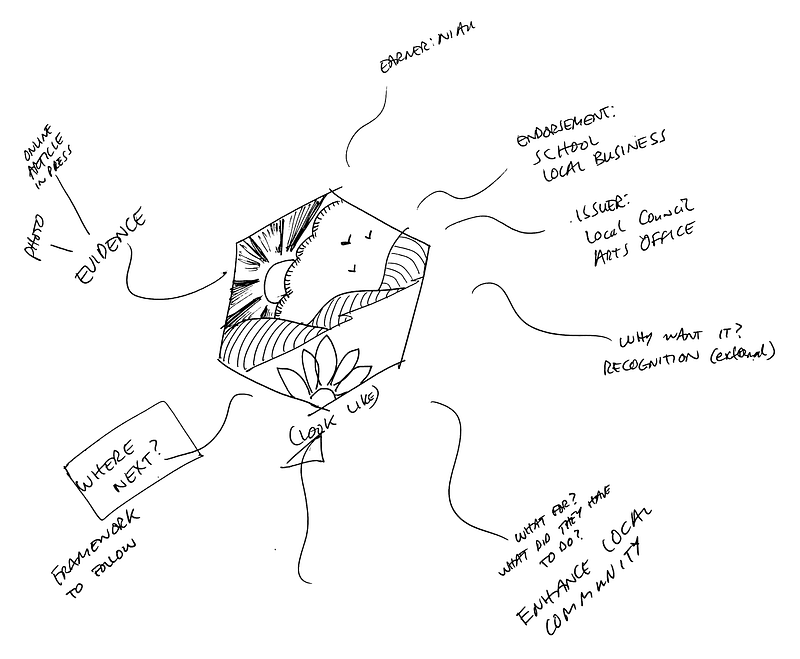 From there, we spent the afternoon ensuring we were on the same page in terms of what badges actually are through a short presentation and Q&A. We used a simple collaborative activity (that worked well at the Mozilla Festival) to design badges that spoke into the context of the ‘cast’ we defined.