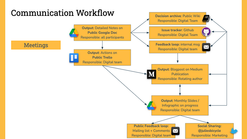 One of the biggest problems in the world of open source is the flow of information from maintainers and/or paid staff to the wider community. It takes transparency and translation to take what is said at a meeting and turn it into documentation that everyone can refer back to. For products, this can be quite an easy translation — things end up on a product roadmap and in an issue tracker. When a project is a bit more complex, involving community engagement, storytelling, partnerships and more inter-personal relationships, it can be easy to lose track of where and how decisions were made.