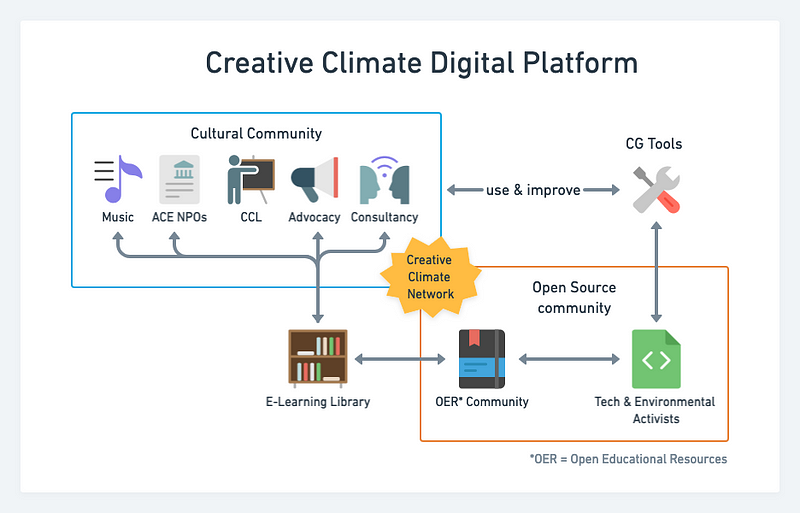 “grow a welcoming Open Source platform and experience that gives the international cultural community the shared knowledge and tools they need to take creative climate action with measurable impact, inspiration, confidence, and solidarity.”
