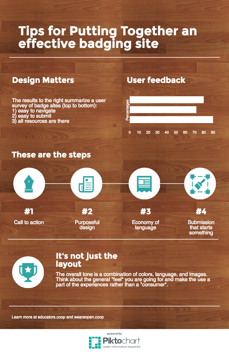 The webinar was led by Steve Regur, with support from Laura Hilliger and Doug Belshaw. It covered four steps for designing an effective badging site, based on the work that Educators Co-op have done primarily with K12 school districts.