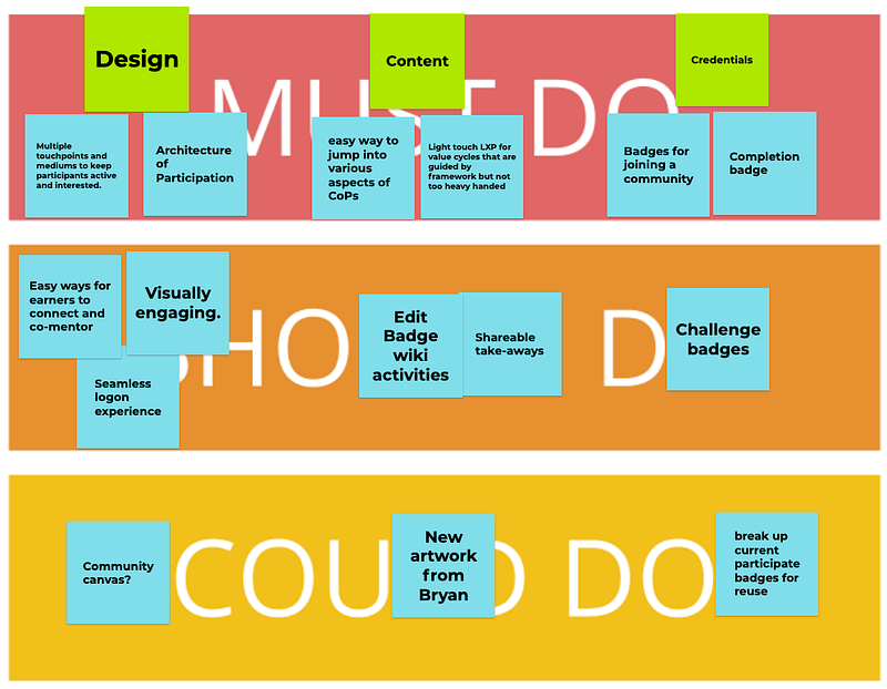 - Run — after we’ve piloted this work with the CoP-curious folks, we engage with Badge Champions . These are people who are motivated and influential in getting an organisation to start thinking about upskilling in a non-traditional way.