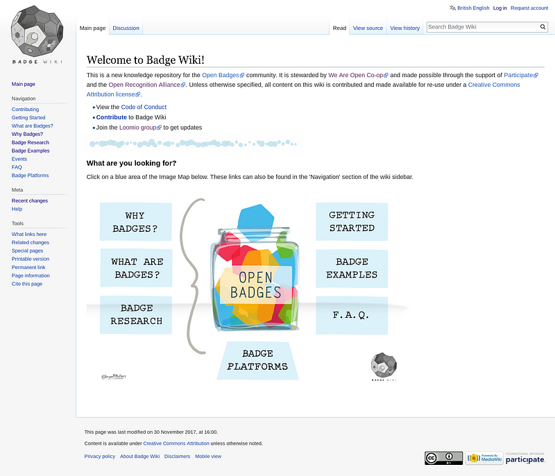 We were helped in our initial work on Badge Wiki by Participate, and the Open Recognition Alliance were also kind enough to provide technology and assistance in running ‘barn raising’ community calls over a six-month period.