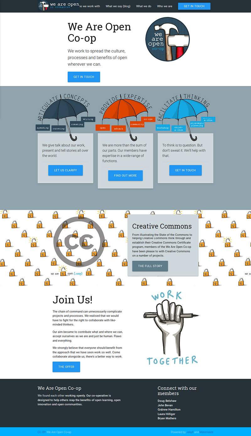 Since then, over the last two years, We Are Open Co-op has gone from strength to strength. We’ve worked with everyone from small teams to large, multi-national corporations. Along the way we’ve learned a lot about co-operativism and ourselves, helped initiate, and establish, a network of co-operative technologists, and had a whole lot of fun.