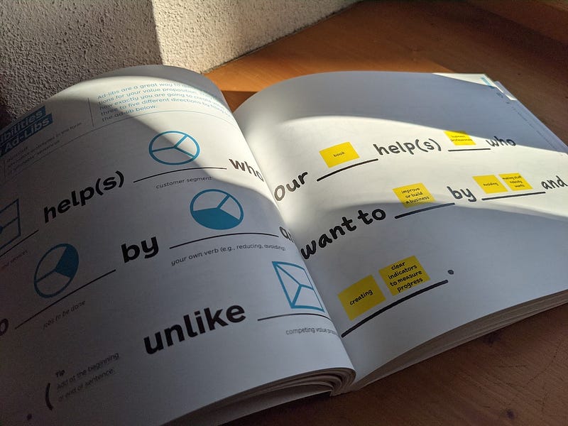 Next, we used an “ad lib” exercise from one of We Are Open’s favourite user-centered design manuals, Value Proposition Design, to put some design constraints in place on each of our prototypes. Looking at the benefits of a particular idea helped us to determine which ideas would have the most impact.